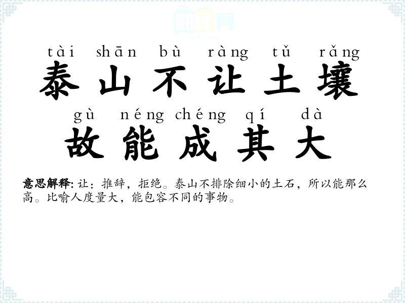 | 泰山不让土壤,故能成其大 |