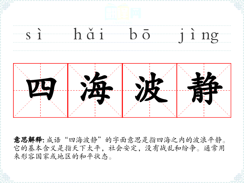 - 日常对话:朋友间谈论时事时,可以说“现在国家稳定,四海波静,真是幸福”。