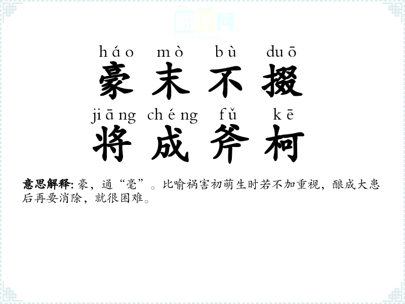 | 豪末不掇,将成斧柯 |