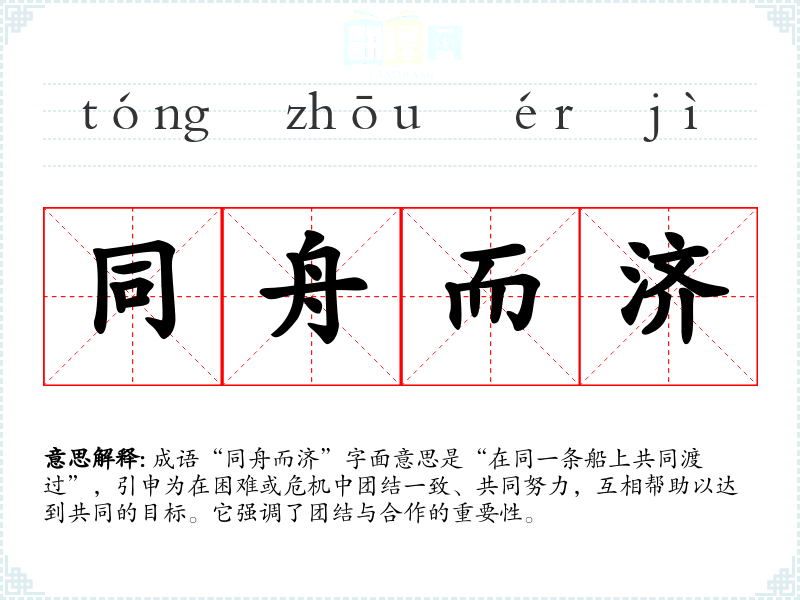 在英语中,与“同舟而济”相似的表达是“United we stand, divided we fall”,同样强调团结的重要性。不同文化中都存在类似的表述,反映了人类共同的价值观念。