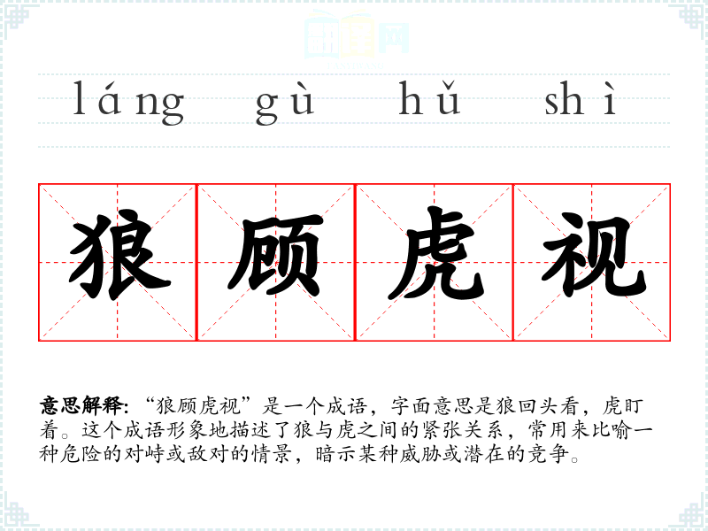 - 演讲:在描述商业竞争或政治斗争时,可以用“狼顾虎视”来形容紧张的局势。