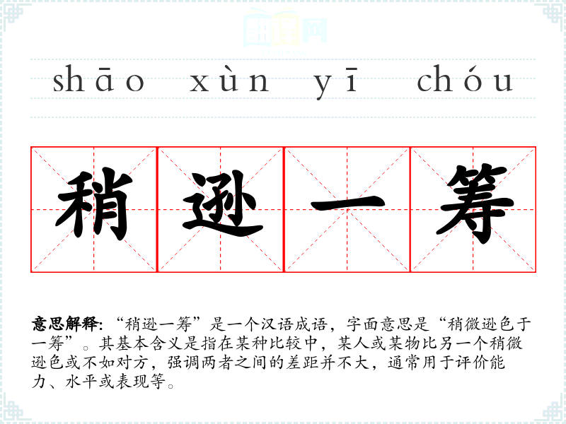 | 略逊一筹 | 逊:次、差;筹:算筹。比较起来,稍微差一点。 |