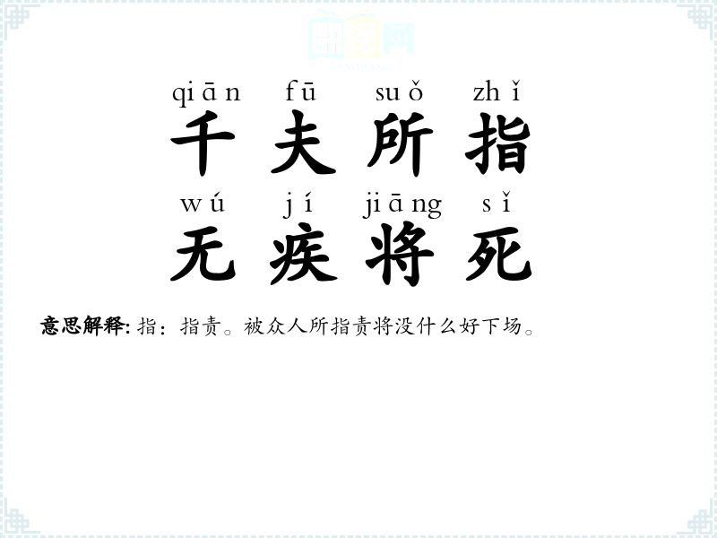 一夫:一个当权者;得情:赢得民心;千室:千家万户;鸣弦:响起弦乐。指一个执政者能体恤民心,老百姓就能生活安乐。 |