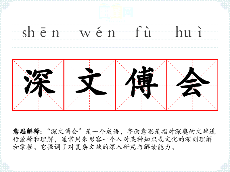 “深文傅会”是一个成语,字面意思是指对深奥的文辞进行诠释和理解,通常用来形容一个人对某种知识或文化的深刻理解和掌握。它强调了对复杂文献的深入研究与解读能力。