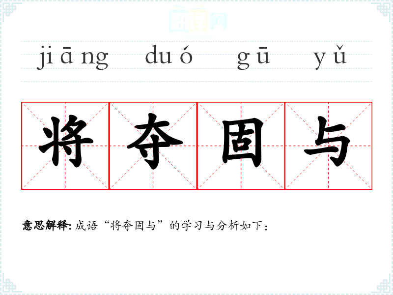 通过对成语“将夺固与”的学,我更加深刻地理解了面对失去时的心态。它不仅在语言学中丰富了我的表达,也让我在生活中更为从容和智慧。这个成语提醒我们,无论经历怎样的变迁,保持内心的平和和对未来的信心,都是重要的。