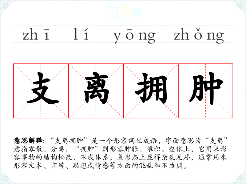 - 演讲:在批评某种现象或作品时,可以用“支离拥肿”来强调其缺乏条理性。