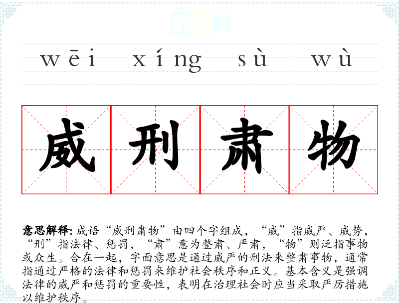 - 日常对话:在讨论社会问题时,比如谈到治安或法律公正时,可以提到“威刑肃物”来强调法律的必要性。