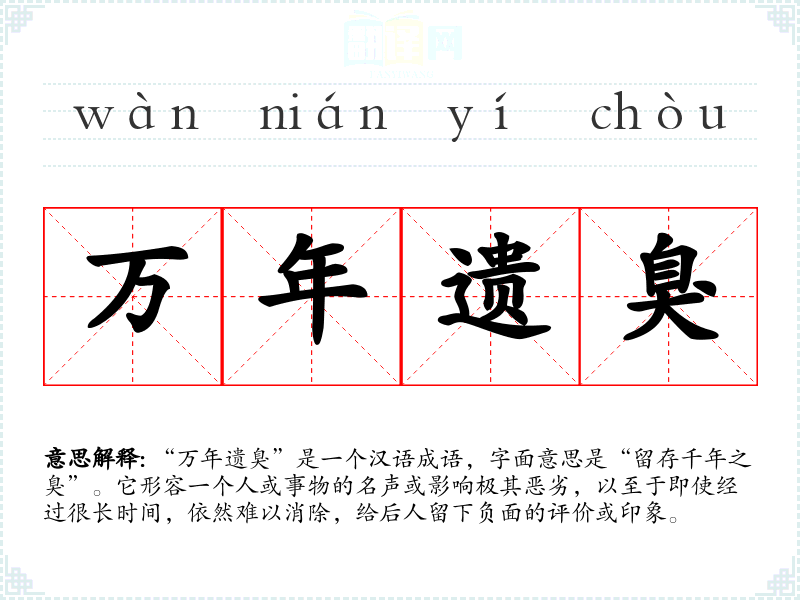 万年遗臭 遗臭:死后留下的恶名。死后恶名一直流传,永远被人唾骂。