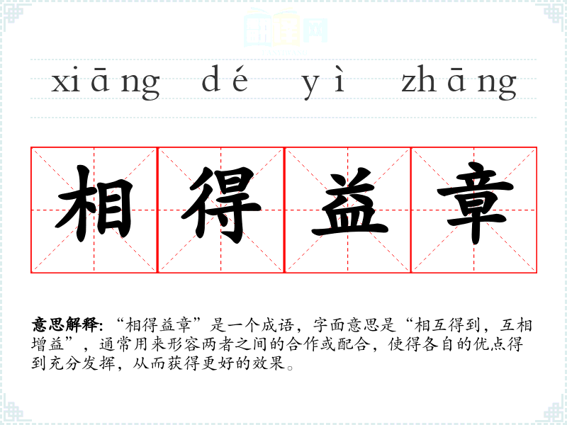 “相得益章”是一个成语,字面意思是“相互得到,互相增益”,通常用来形容两者之间的合作或配合,使得各自的优点得到充分发挥,从而获得更好的效果。