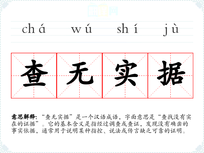 - 法律场景:在法庭上,律师可能会说“查无实据”来说明控方没有足够的证据支持其指控。