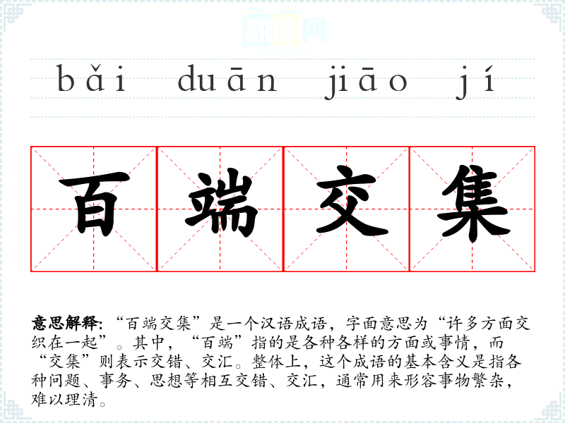 - 在这个复杂的社会中,许多人面临着百端交集的烦恼。