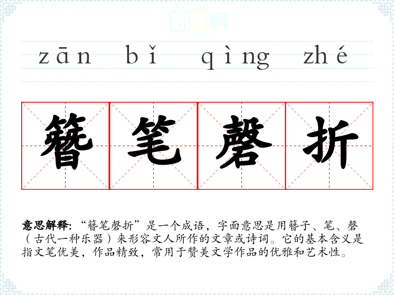 “簪笔磬折”是一个成语,字面意思是用簪子、笔、磬(古代一种乐器)来形容文人所作的文章或诗词。它的基本含义是指文笔优美,作品精致,常用于赞美文学作品的优雅和艺术性。