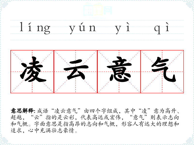 - 日常对话:可以用来鼓励朋友或家人追求自己的梦想,例如:“你要保持凌云意气,勇敢追求自己的目标。”