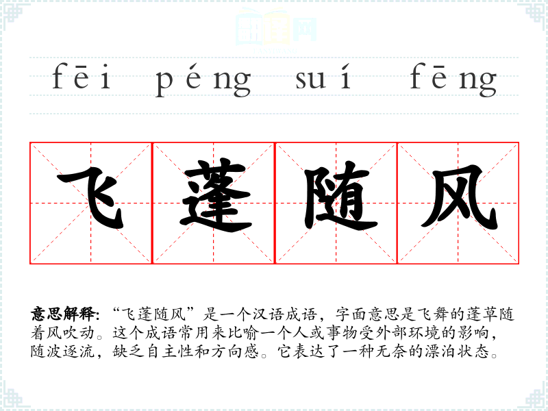 在英语中,类似的表达可以是“drifting with the wind”,同样传达了无目标、随波逐流的意涵。然而,文化背景不同,中文的“飞蓬随风”更强调了自然界与人生哲学的紧密联系,给人以深刻的思考。