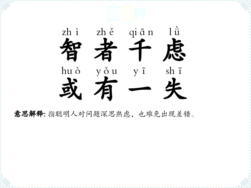 指聪明人对问题深思熟虑,也难免出现差错。 |