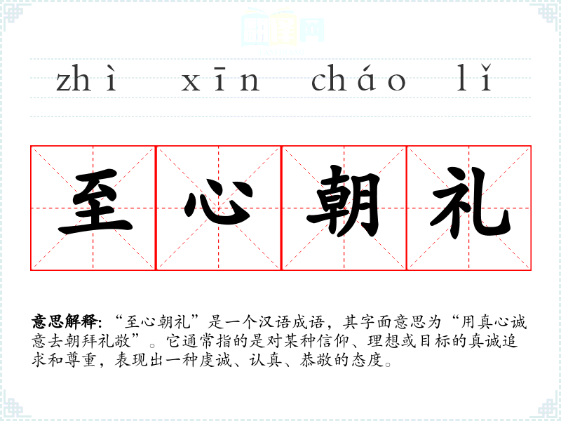 该成语的来源可以追溯到古代的和礼仪文化。在传统文化中,朝礼是对天、地、祖先以及神明表示敬仰和感恩的行为。至心则强调了内心的真诚与专注。虽然没有特别的文献记载该成语的确切出处,但可以在许多古代典籍中找到与其精神相似的表达。