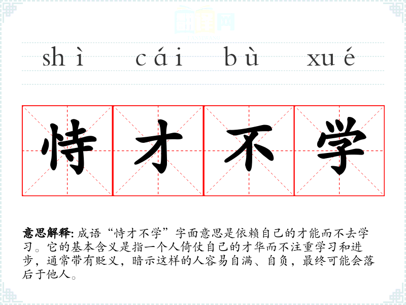 - 日常对话:用来形容朋友或同事的态度,比如“他真是恃才不学,总是觉得自己不需要提升。”