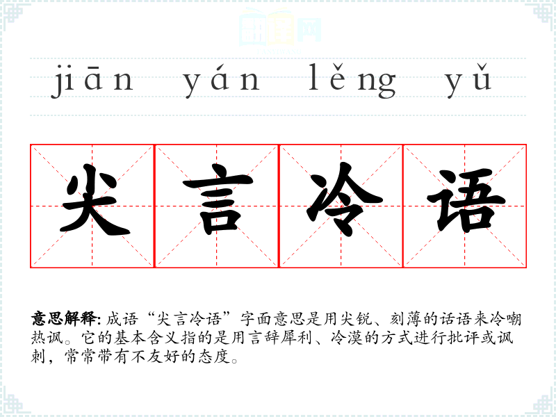 成语“尖言冷语”字面意思是用尖锐、刻*的话语来冷嘲热讽。它的基本含义指的是用言辞犀利、冷漠的方式进行批评或讽刺,常常带有不友好的态度。