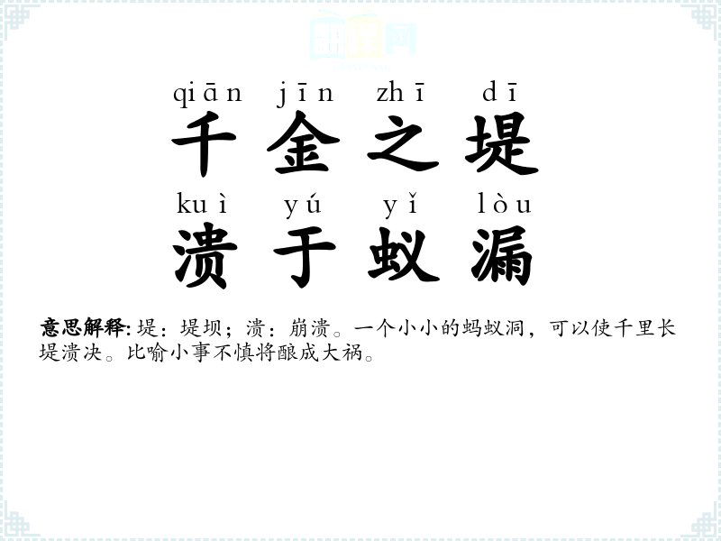 | 千金之堤,溃于蚁漏 |
