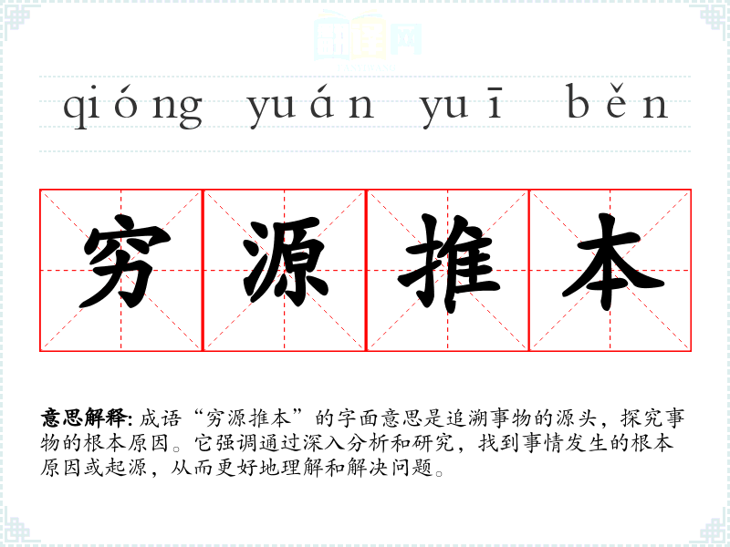 成语“穷源推本”的字面意思是追溯事物的源头,探究事物的根本原因。它强调通过深入分析和研究,找到事情发生的根本原因或起源,从而更好地理解和解决问题。