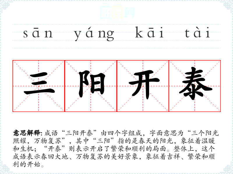 - 日常对话:人们在新年期间常用来祝福他人,如“祝你新年快乐,三阳开泰”。