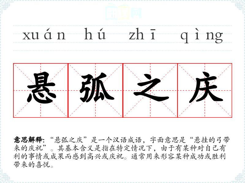 “悬弧之庆”是一个汉语成语,字面意思是“悬挂的弓带来的庆祝”。其基本含义是指在特定情况下,由于有某种对自己有利的事情或成果而感到高兴或庆祝。通常用来形容某种成功或胜利带来的喜悦。
