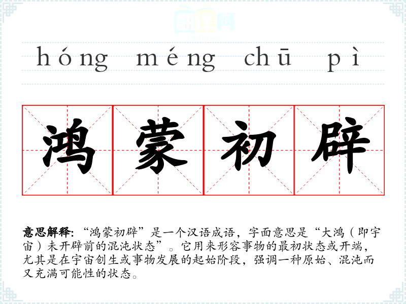 - 日常对话:可以用来形容某个领域或事情的起步阶段,比如“在技术发展的鸿蒙初辟阶段,我们需要更多的探索与尝试。”