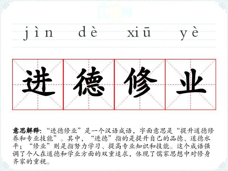 - 日常对话:人们在讨论自我提升和学*时可以提及,比如说“我最近在努力进德修业。”