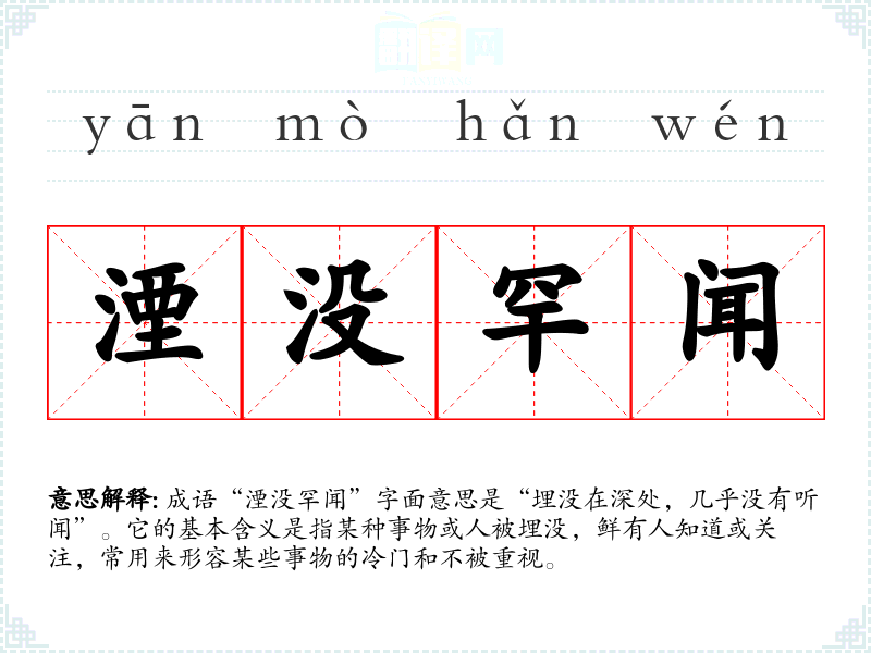 “湮没罕闻”出自《左传》,在历史记载中常常用来描述被忽视或不为人知的人或事。在古代,许多优秀的人才因环境或其他原因未能被重视,而成语的使用恰好反映了这一历史现象。