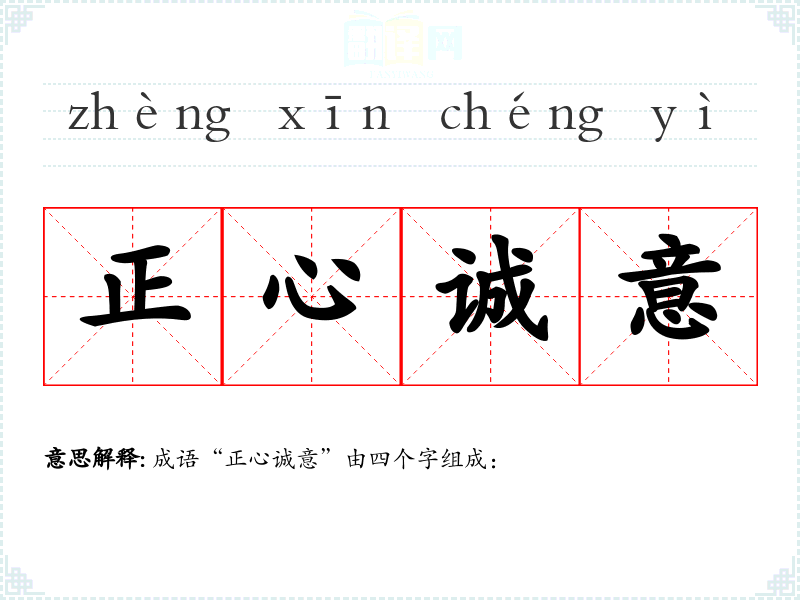 成语“正心诚意”由四个字组成:
