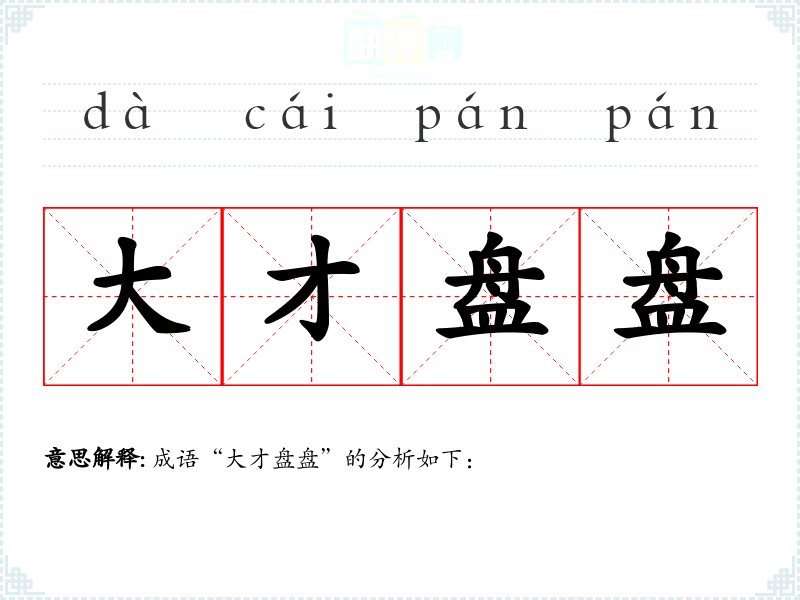 | 大才盘盘 | 盘盘:形容大的样子。指有大才干的人。 |