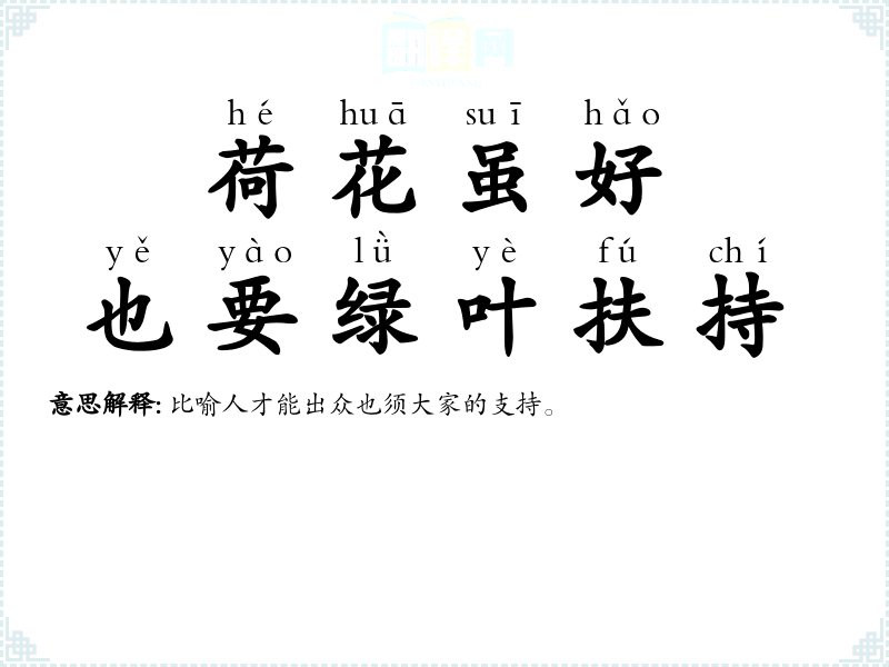 比喻人不管有多大能耐,总得有人在旁协助。 |