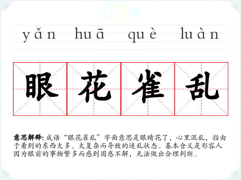 - 日常对话:可以在朋友间谈论繁忙生活时使用,比如“我这几天工作太多,真是眼花雀乱”。