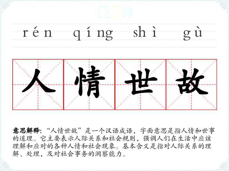 | 人情世故 | 为人处世的道理。 |
