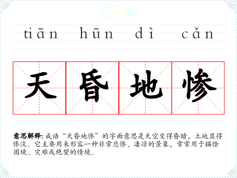 在其他文化中,类似的表达也存在。例如,英语中可以用“dark days”来形容悲惨的时光,这与“天昏地惨”在情感表达上有相似之处,都是用自然现象来比喻人类的困境。