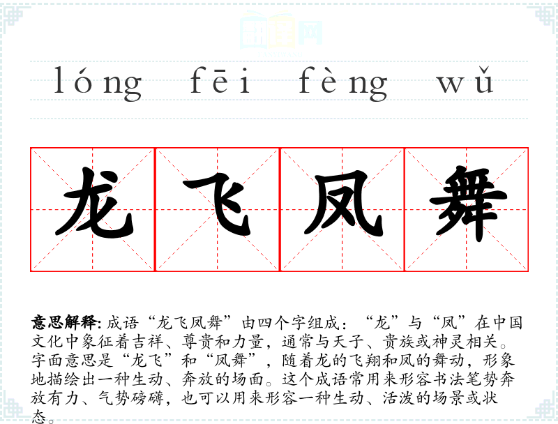 “龙飞凤舞”最早出现在南朝的《文心雕龙》中,其中提到书法的表现力。这个成语不仅与书法相关,还反映了古代文人对笔墨的追求与审美。它强调了艺术创作中的自由与激情,表达了对优雅与力量的向往。