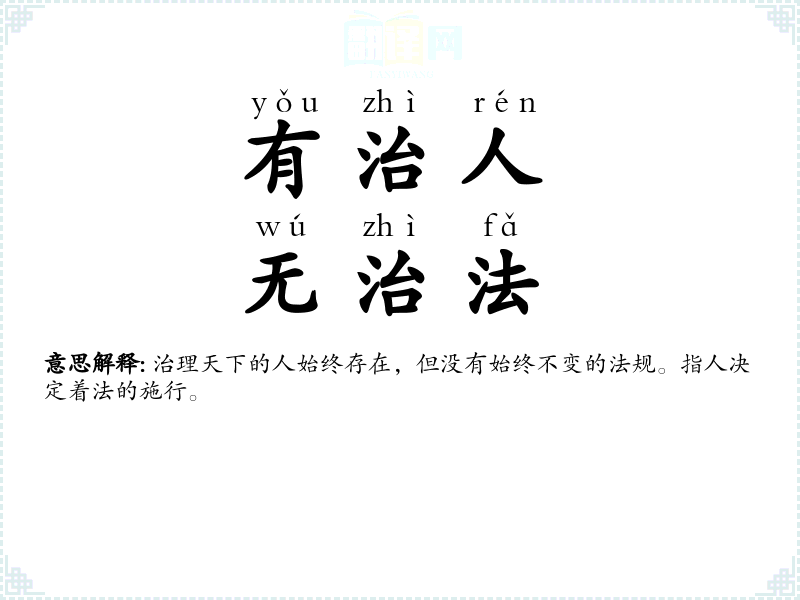 | 一王之法 | 一王:一代王朝;法:标准。一个时代的规范。 |