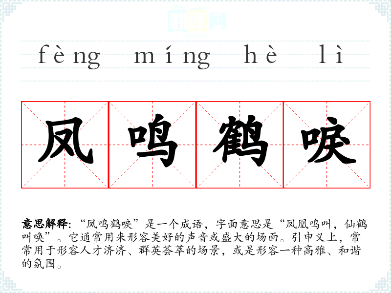 | 凤鸣鹤唳 | 形容优美的声音。 |
