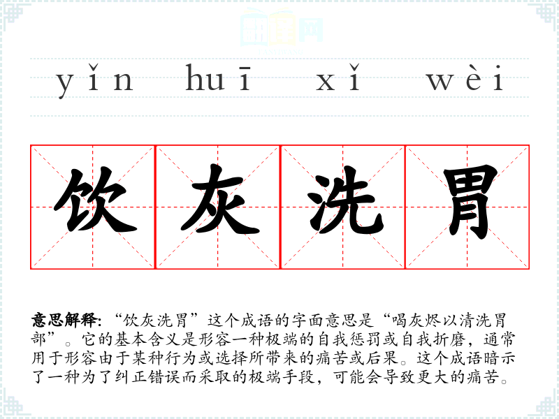 饮灰洗胃 灰:古代以草木灰作洗涤剂。比喻悔过自新。