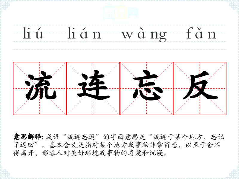 - 流连忘却:与“流连忘返”意思相似,强调忘记时间的流逝。