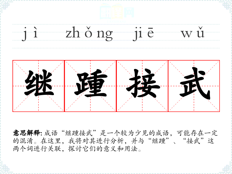 成语“继踵接武”是一个较为少见的成语,可能存在一定的混淆。在这里,我将对其进行分析,并与“继踵”、“接武”这两个词进行关联,探讨它们的意义和用法。