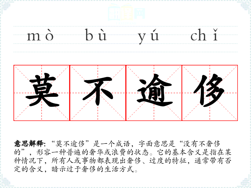 | 莫不逾侈 | 莫:没有谁;逾:超越,引申为过度;侈:奢侈。没有谁不会过度奢侈。 |