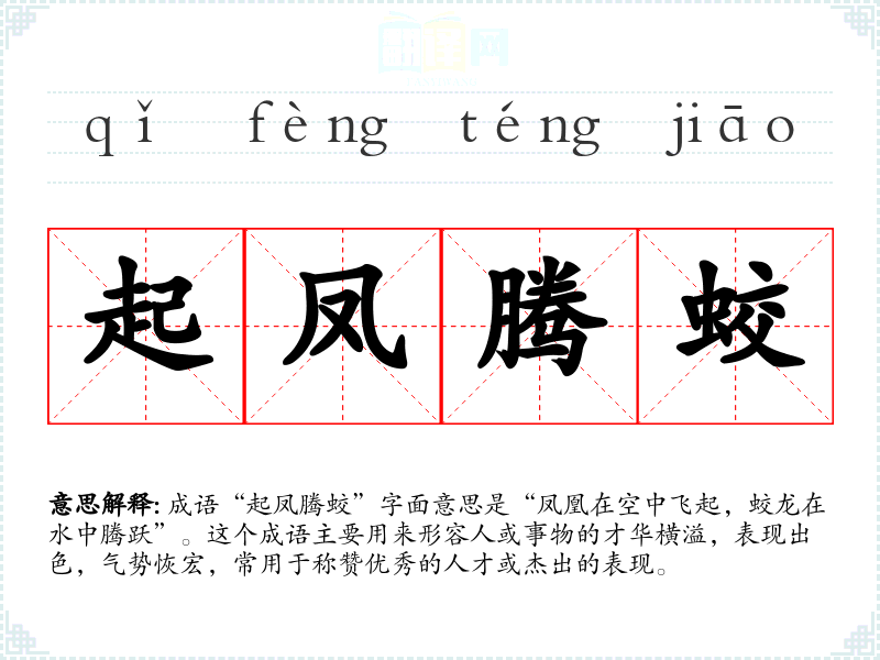 - 文学作品:常用于描述角色的才能或成就,如“他在比赛中表现出色,真是起凤腾蛟。”
