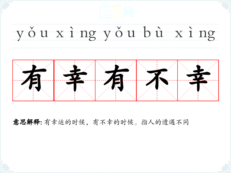 | 有幸有不幸 | 有幸运的时候,有不幸的时候。指人的遭遇不同 |