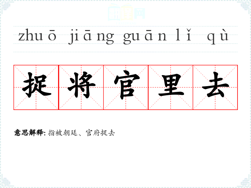 | 捉将官里去 | 指被朝廷、官府捉去 |