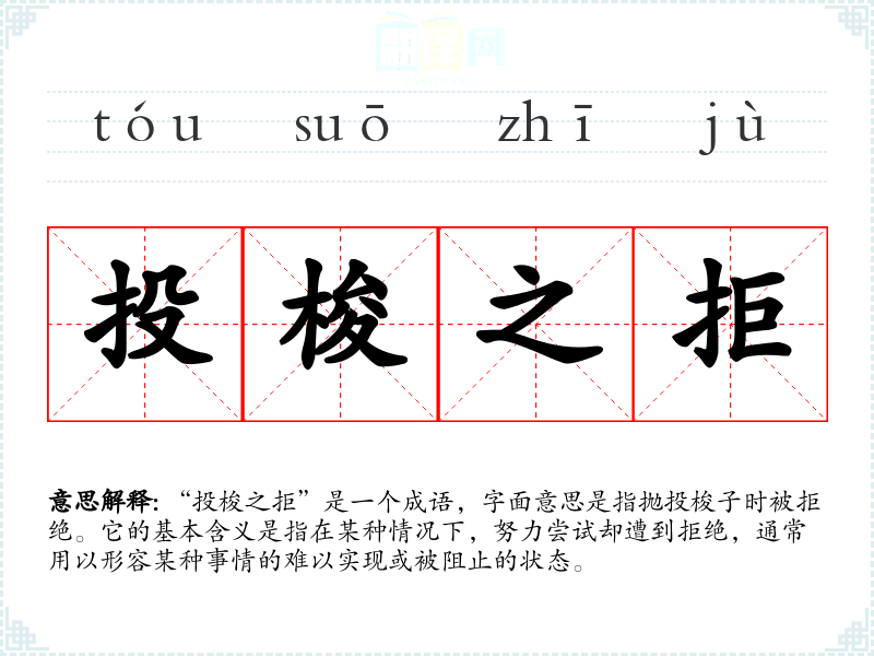 通过对“投梭之拒”的学,我认识到这一成语不仅仅是对挫折的描述,更是对努力与结果之间关系的深刻思考。在语言学和表达中,能够使用这样的成语,使得表达更为生动与有力,同时也能引发听者的共鸣,增强沟通的效果。