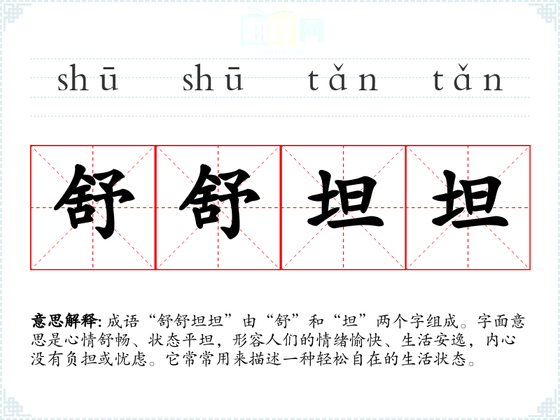 | 舒舒坦坦 | 舒适愉快。 |