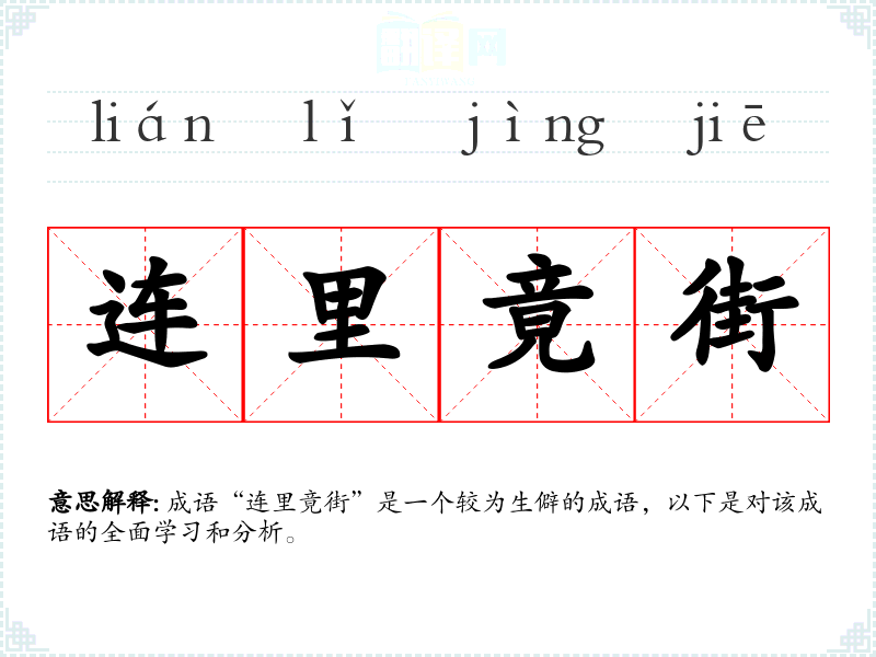成语“连里竟街”是一个较为生僻的成语,以下是对该成语的全面学*和分析。