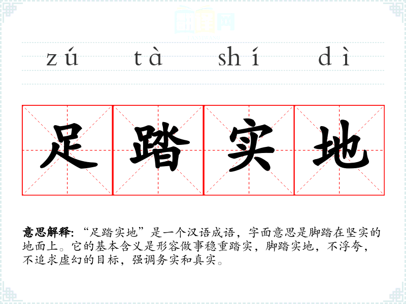 - 日常对话:用来形容朋友或同事的工作态度,比如“他做事情总是足踏实地,绝不会浮夸。”