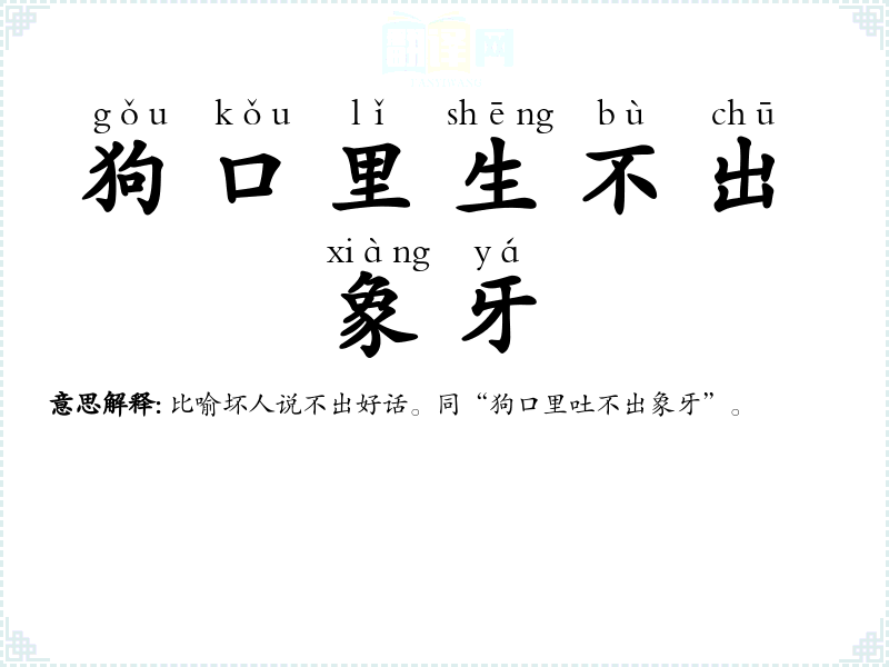 比喻坏人说不出好话。同“狗口里吐不出象牙”。 |